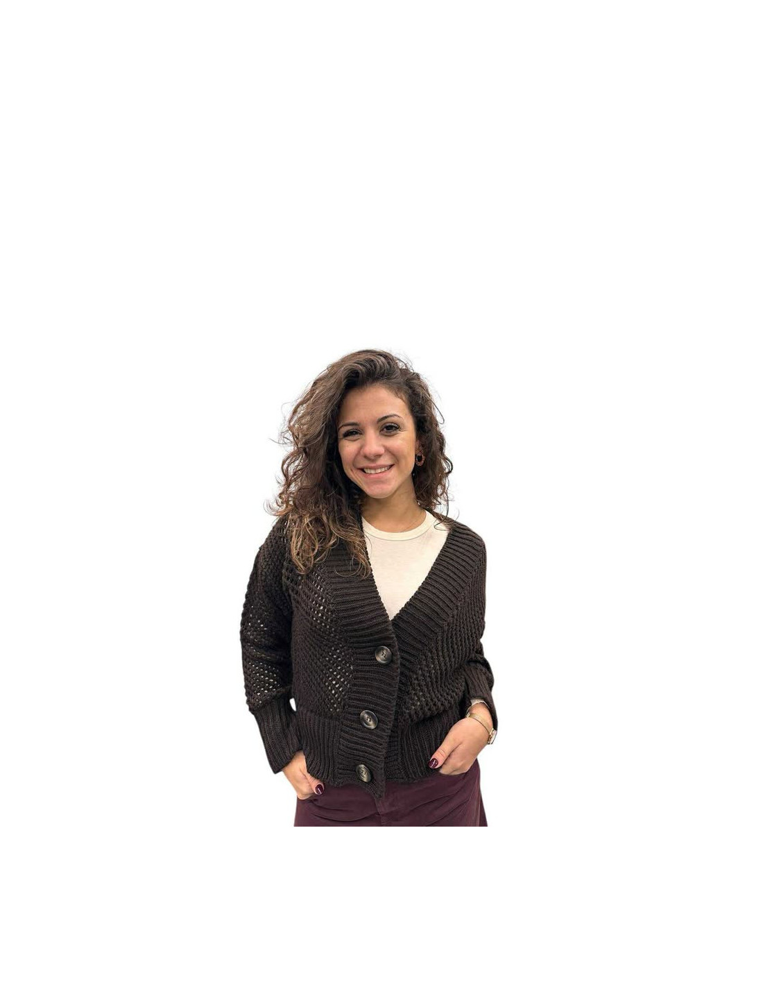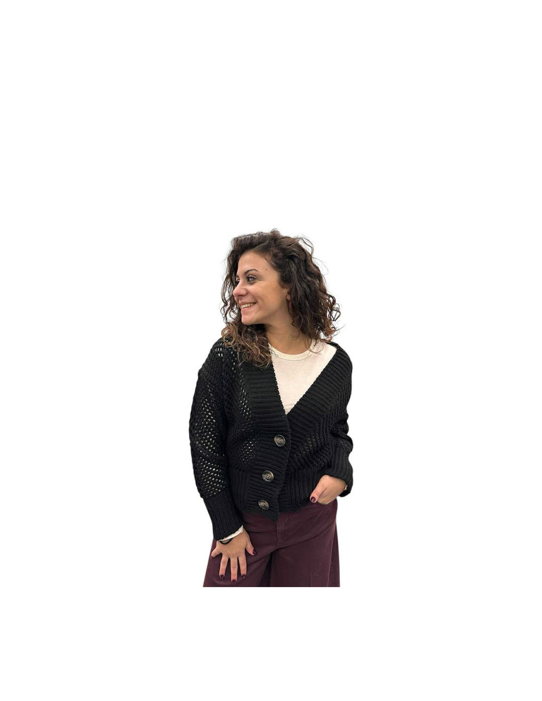 Cardigan traforato bottoni tartarugati