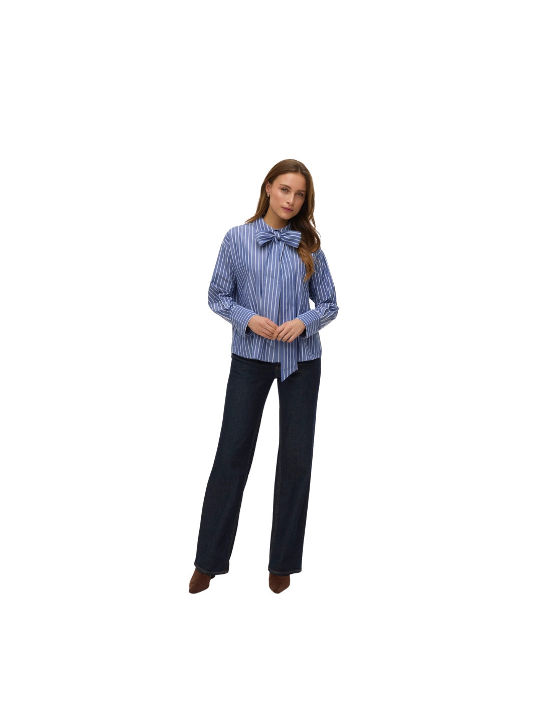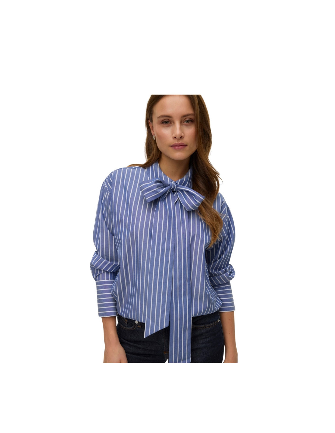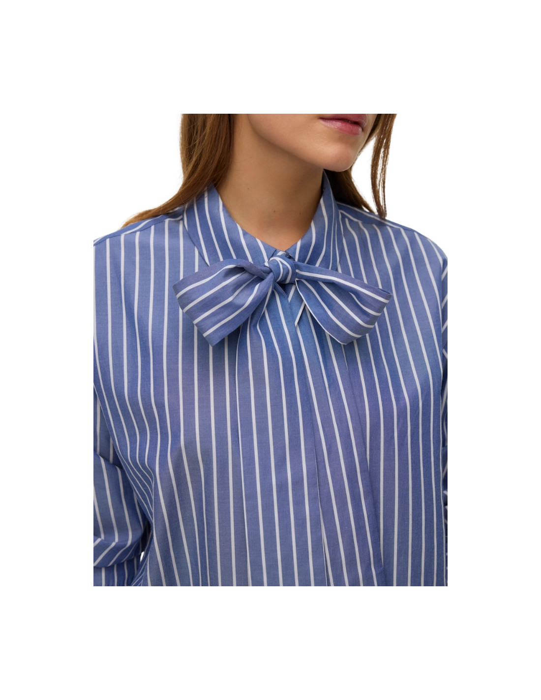 Camicia a Righe Azzurre con Fiocco al Collo | Casual Chic