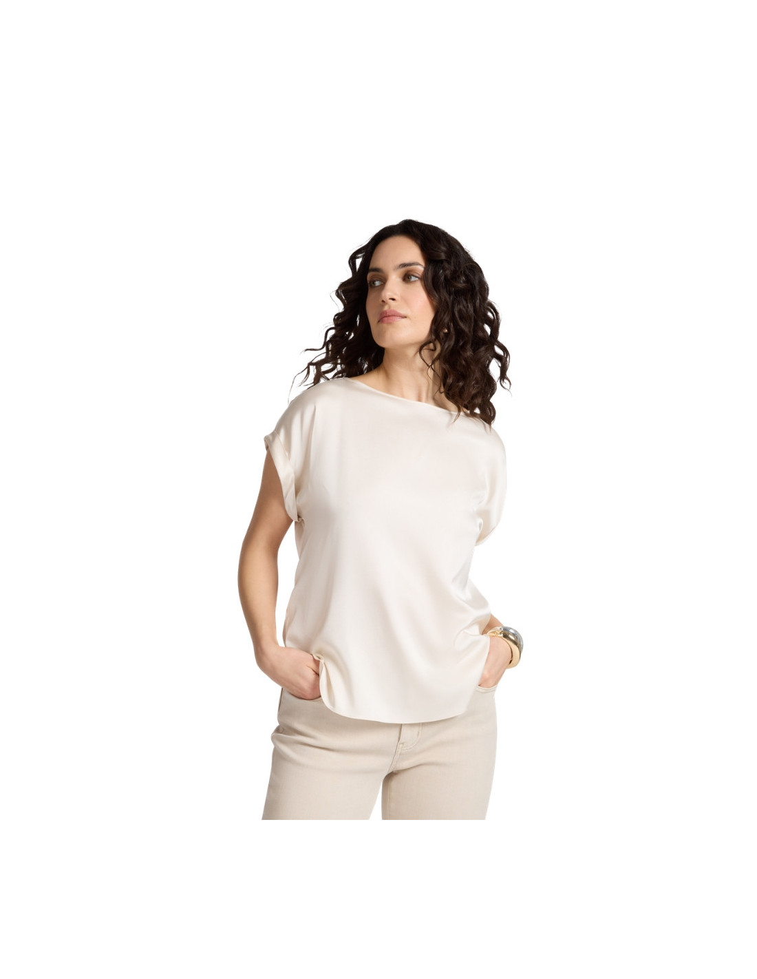 Elena MiròEleganza fluida e luminosità raffinata definiscono la blusa in viscosa effetto satin, un capo versatile perfetto per ogni momento della giornata.