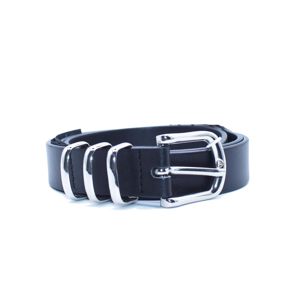 Cintura In Vera Pelle Sottile Incrociata Fibbie Circolari