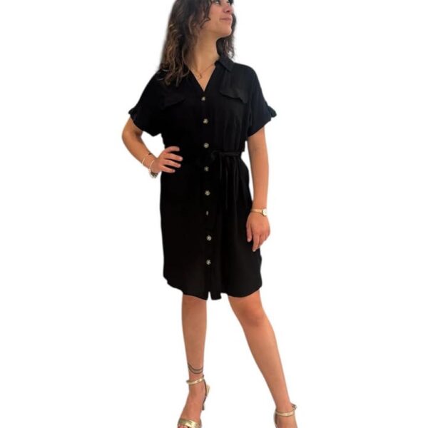 Vestito Scamiciato Tasche Bottoni Tartarugati