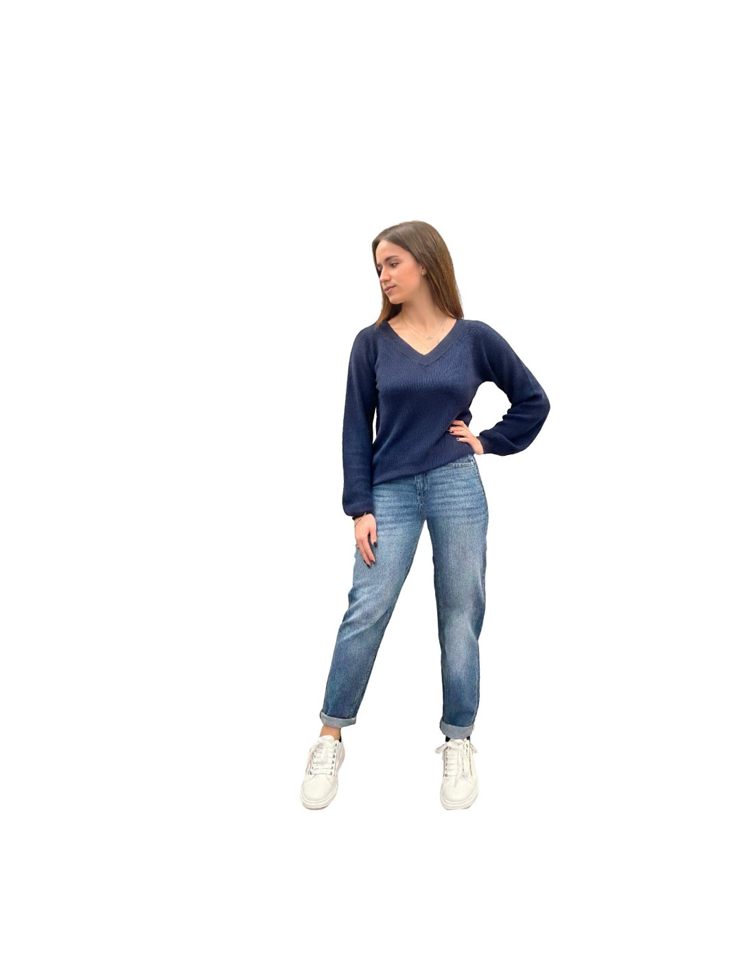 Maglioncino Doppio Scollo a V Blu Navy - Vero Moda | Soft Touch & Sostenibile