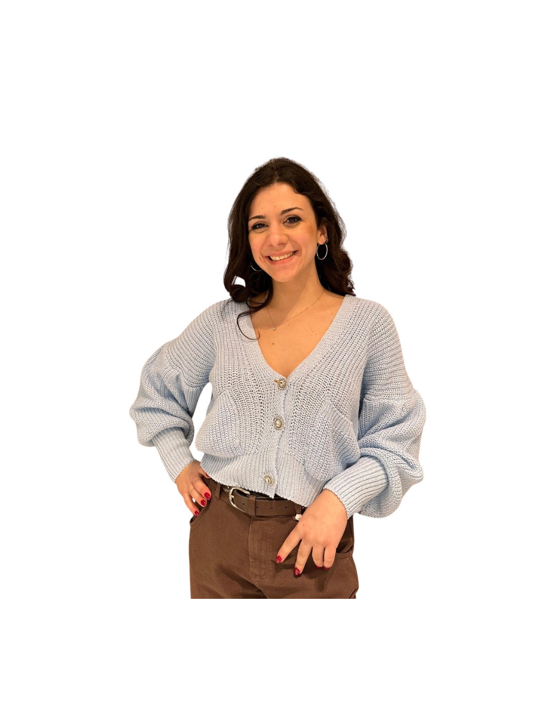 Cardigan bottone gioiello CIELO