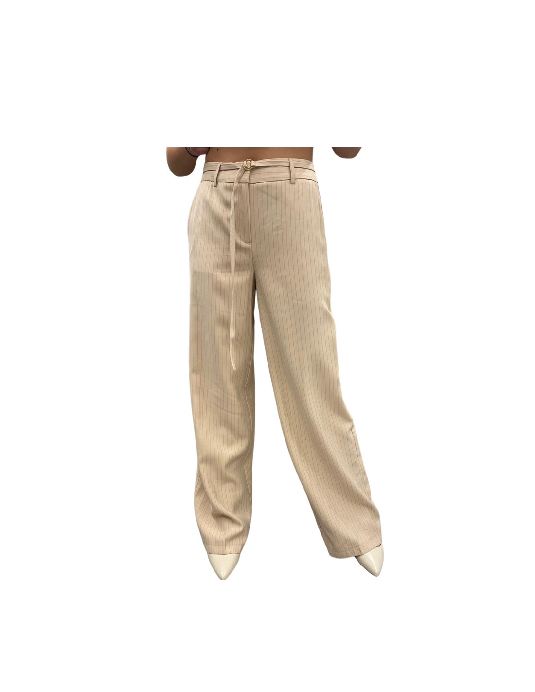 Pantalone wide gessato SABBIA