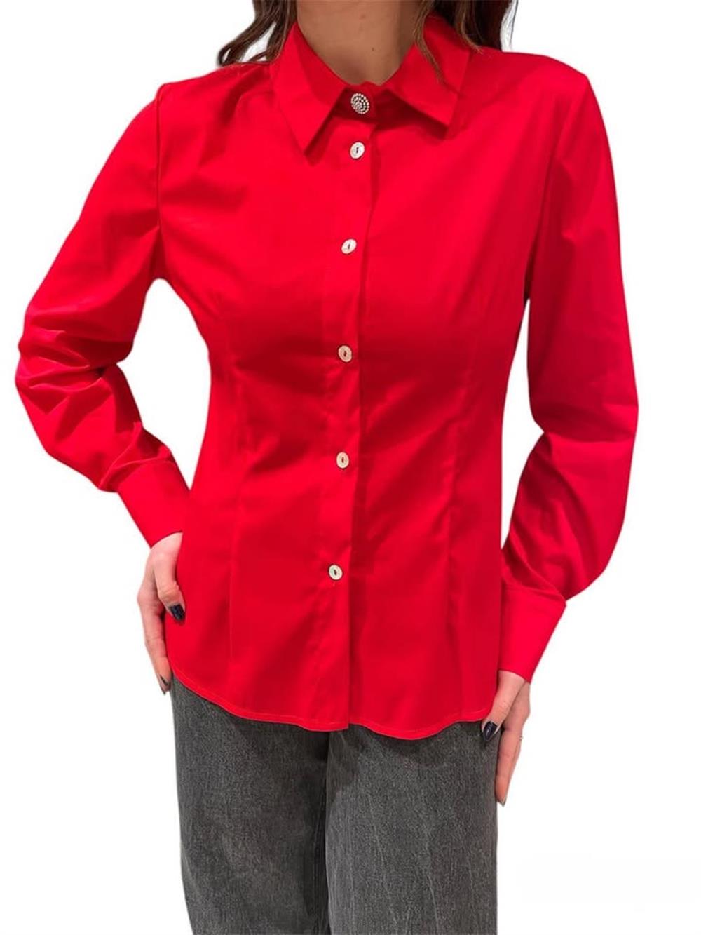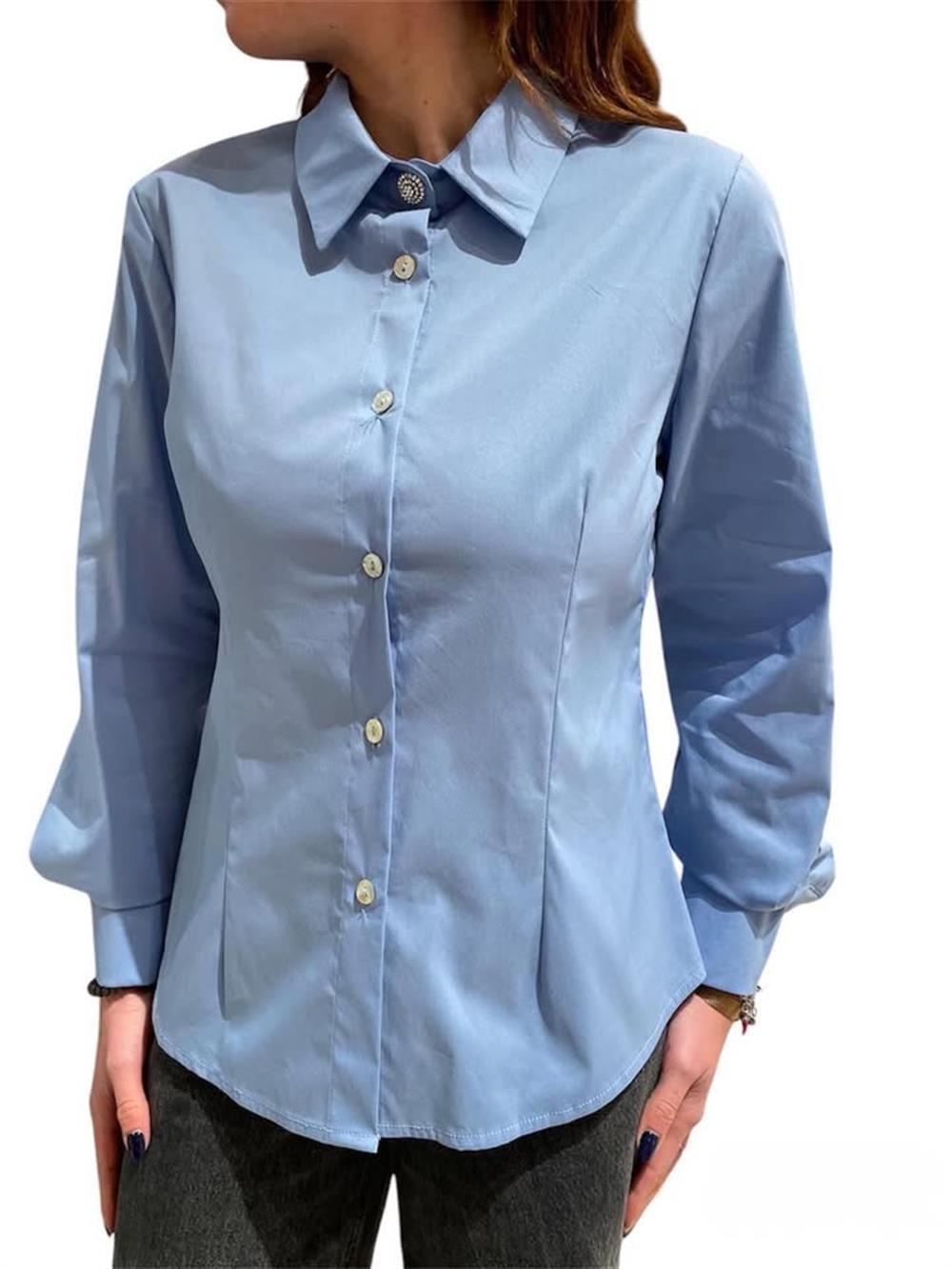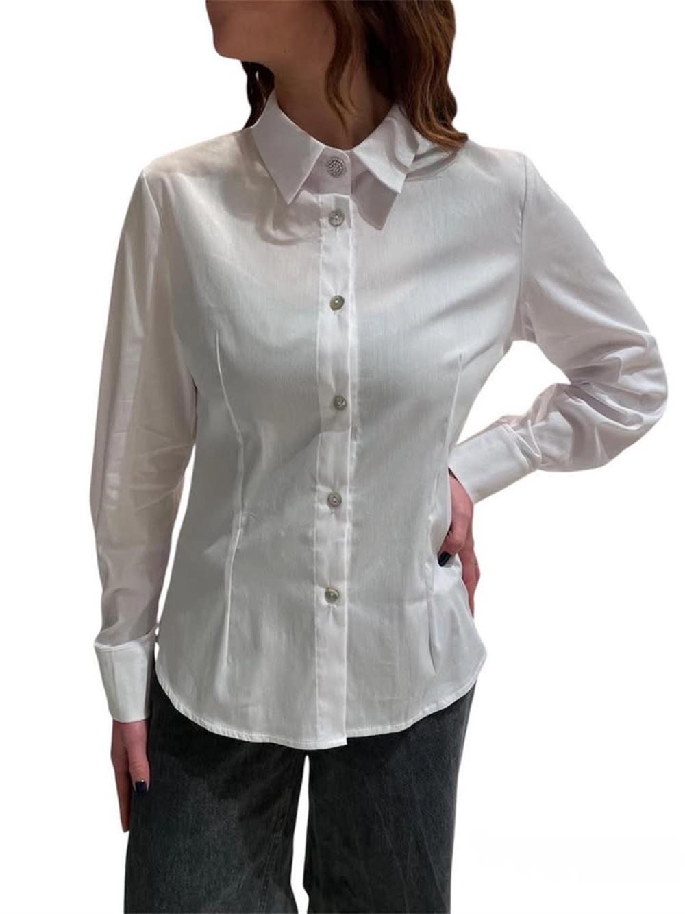 Camicia In Cotone Sfiancata Bottone Gioiello