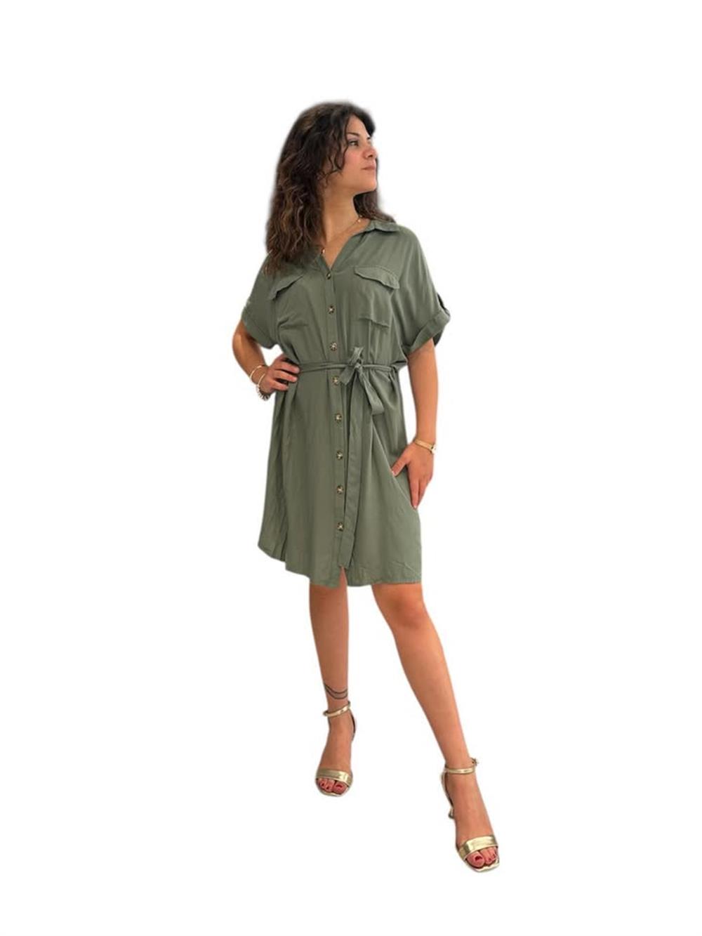 Vestito Scamiciato Tasche Bottoni Tartarugati