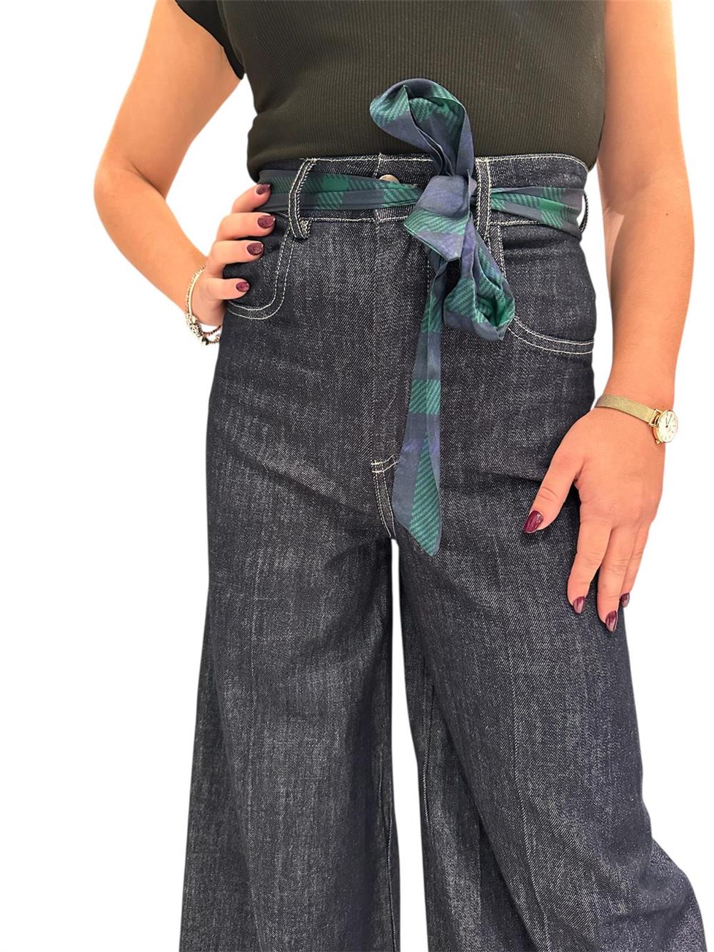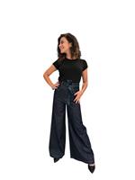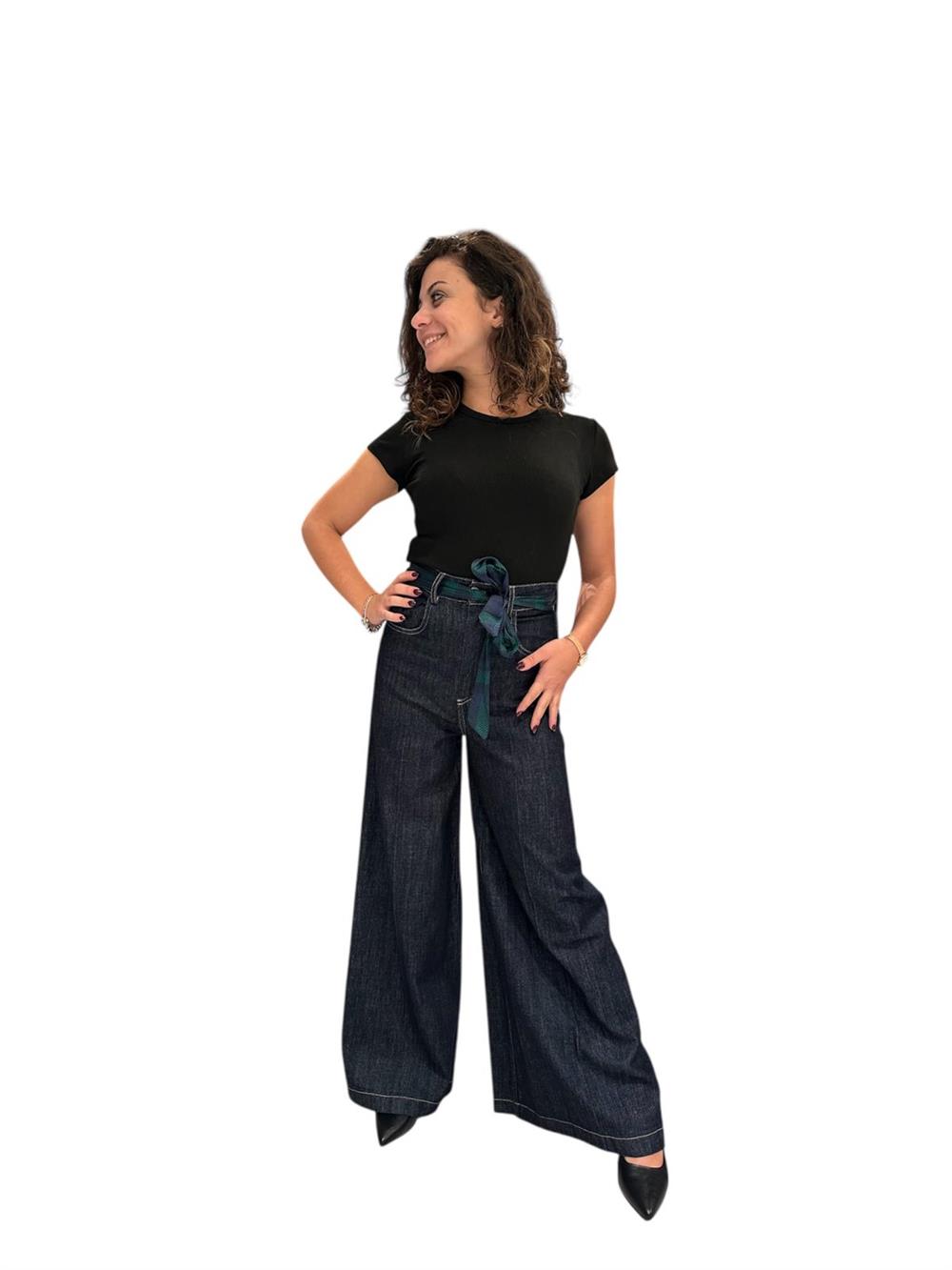 Jeans Palazzo Denim Scuro Nastro Vita