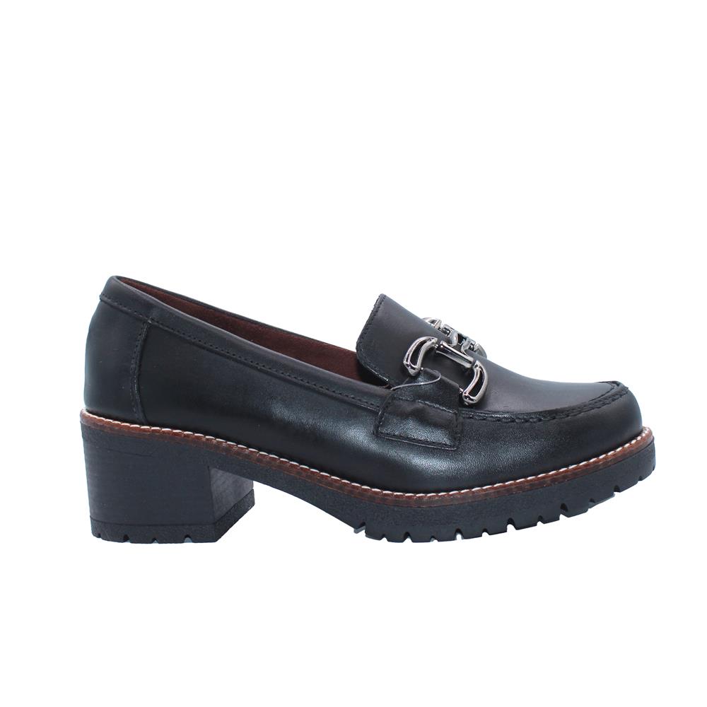 Mocassino con tacco in gomma morsetto metallo