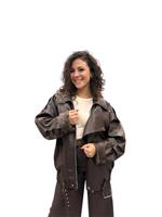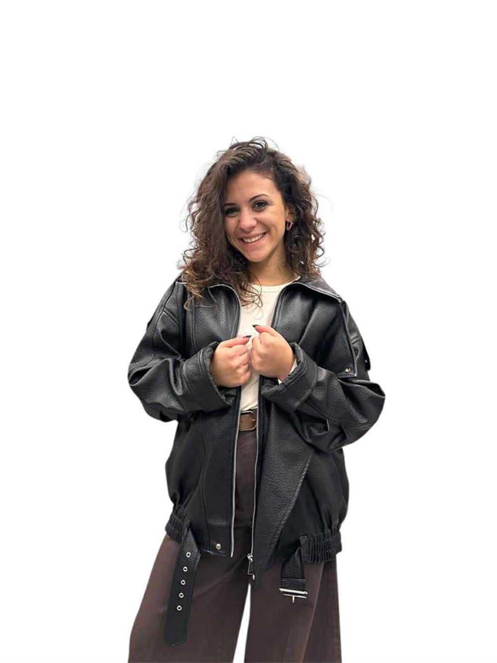 SKU: 22984 Categories: Abbigliamento, Autunno Inverno 2025/2026, Giacche, LE STREGHE Tags: abbigliamento donna, Chiodo con rever, ecopelle. le streghe, giacca, glamour