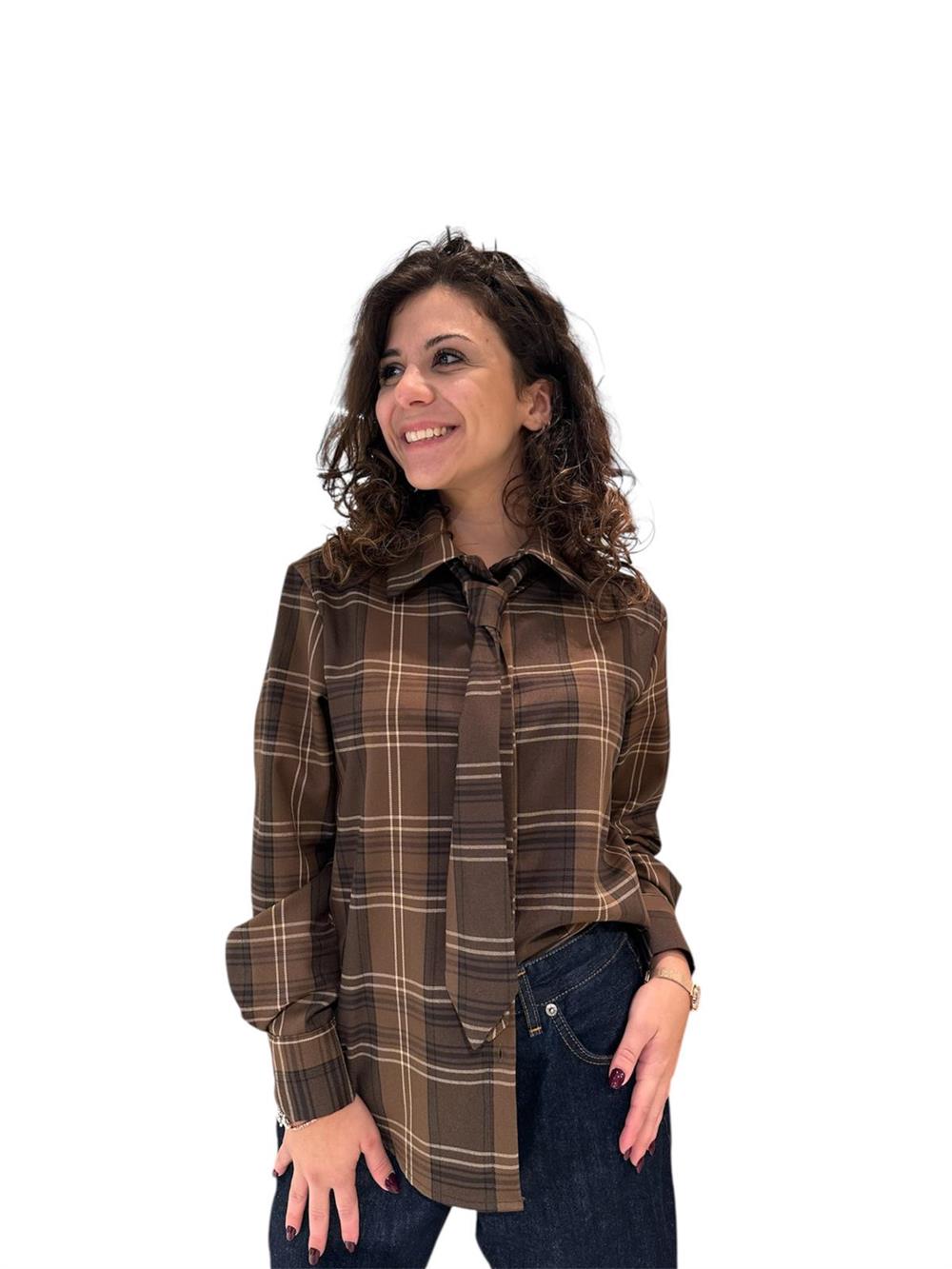 SKU: 23040 Categories: Abbigliamento, Autunno Inverno 2025/2026, Camicie E Bluse, tensione in Tags: abbigliamento donna, Camicia check cravattino, glamour, tensione in