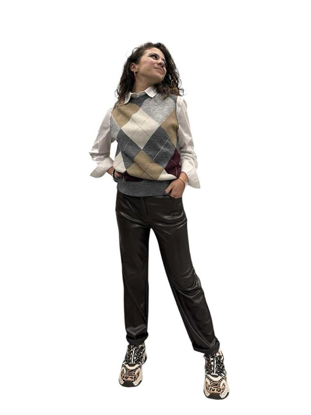 SKU: 23065 Categories: Abbigliamento, Autunno Inverno 2025/2026, Pantaloni, Saldi, tensione in Tags: abbigliamento donna, glamour, pantalone, Pantalone in similpette gamba dritta, tensione in