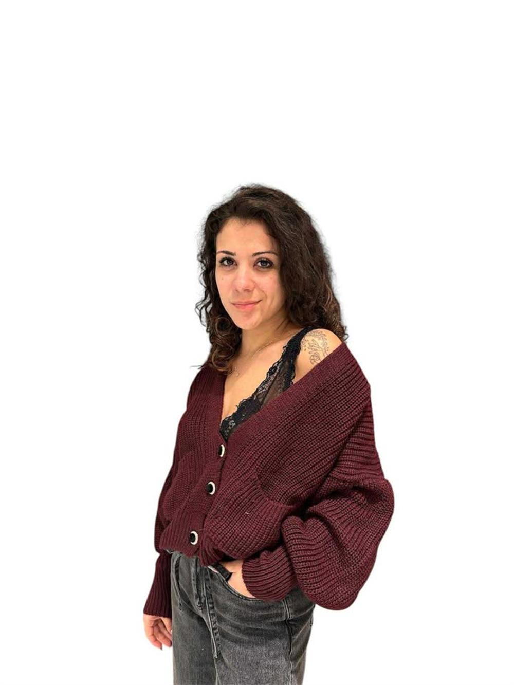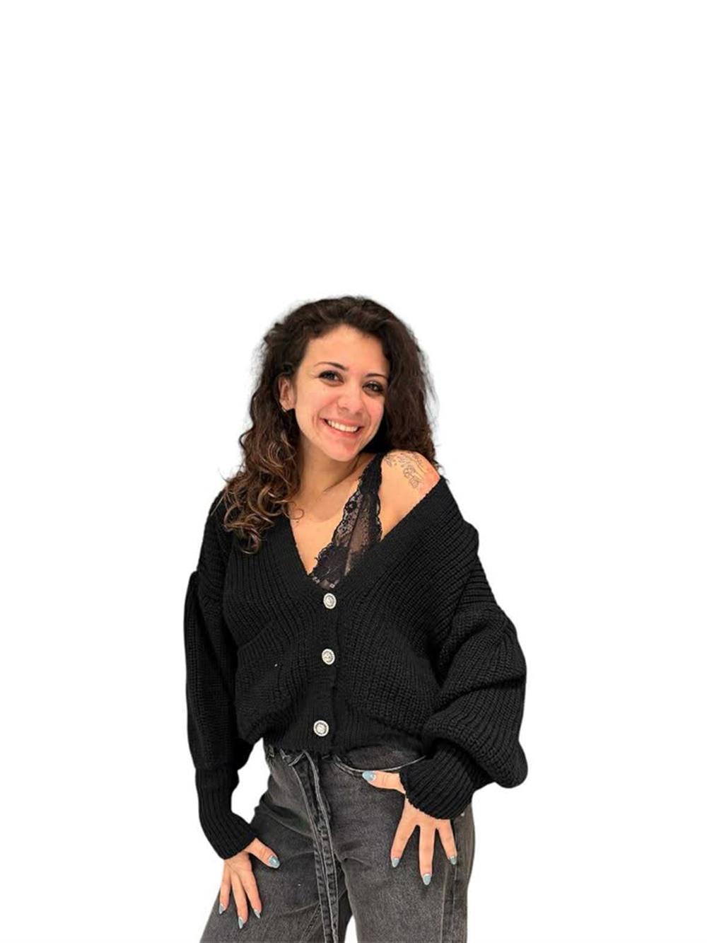 Home » Negozio » Cardigan Maniche Ampie Bototni Velluto