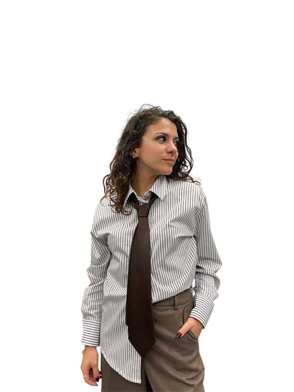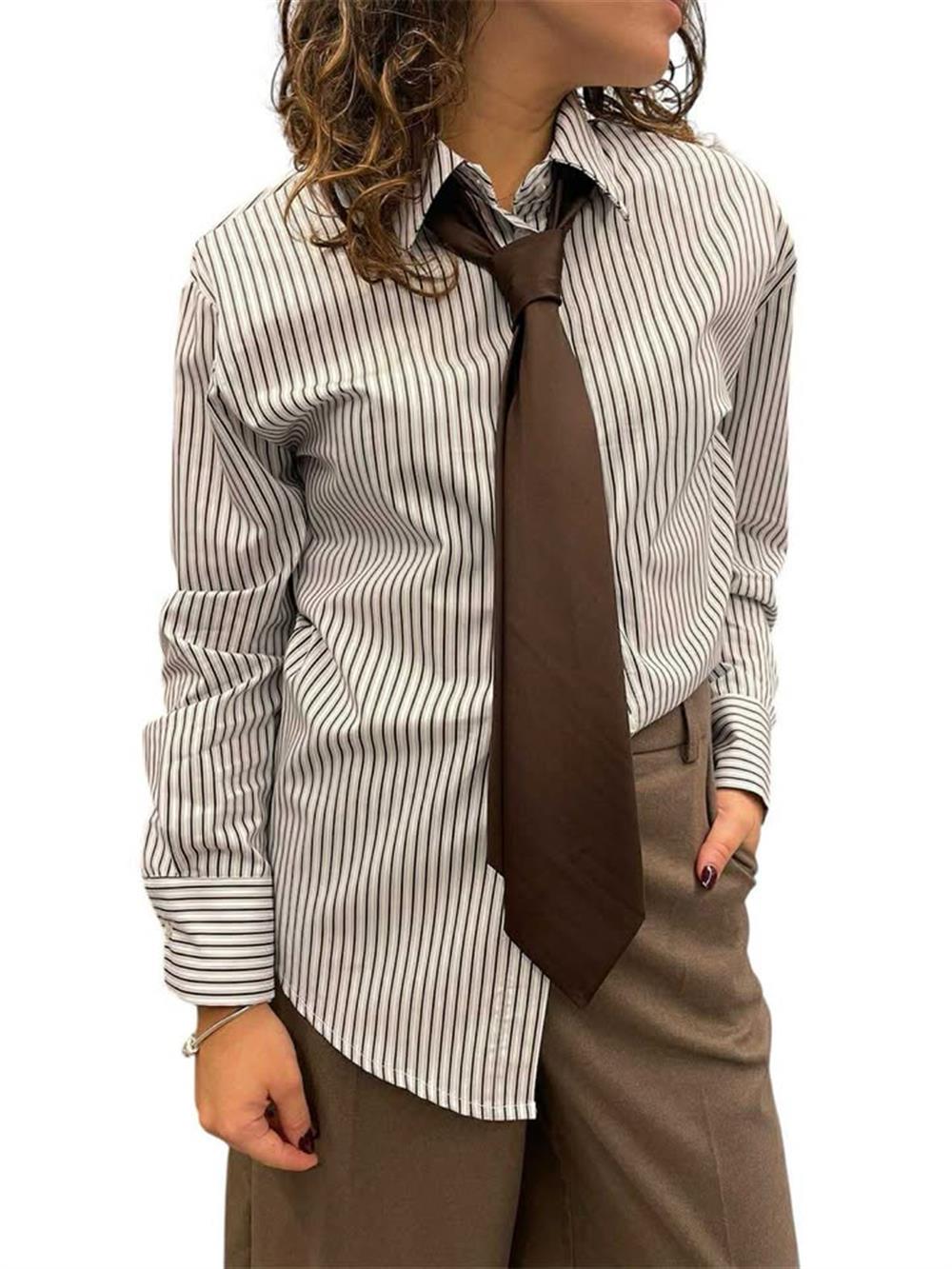 Camicia Rigata Inserto Cravatta Satin