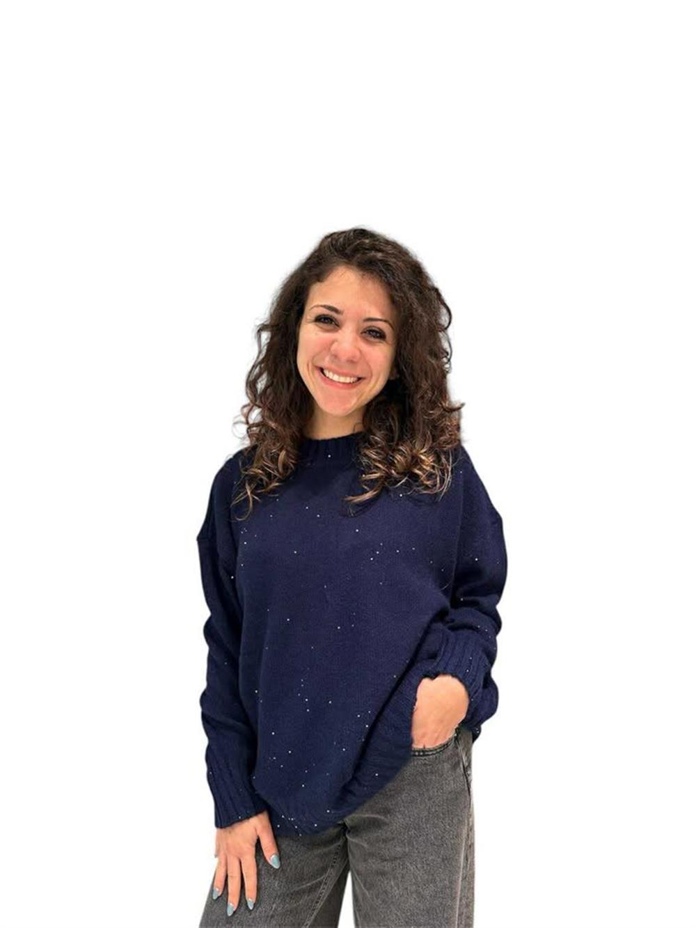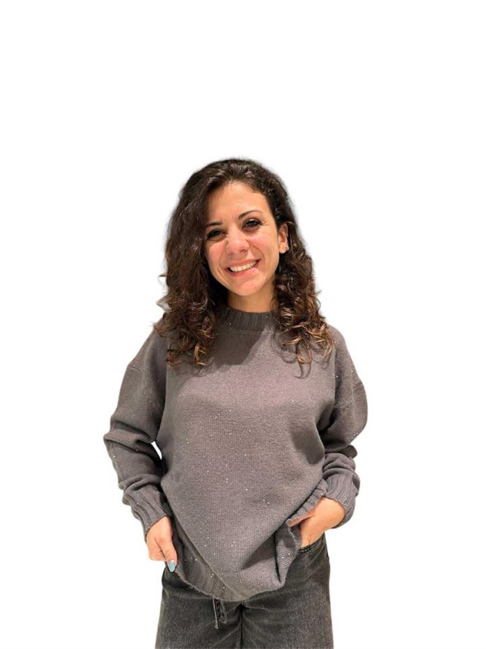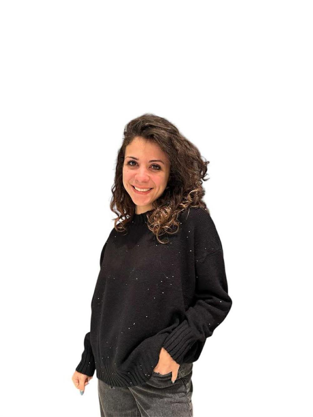 SKU: 23262 Categories: Abbigliamento, Autunno Inverno 2025/2026, Felpe E Maglioni, Zahjr Tags: abbigliamento donna, glamour, maglione, Pullover basic micro paillettes, zahjr