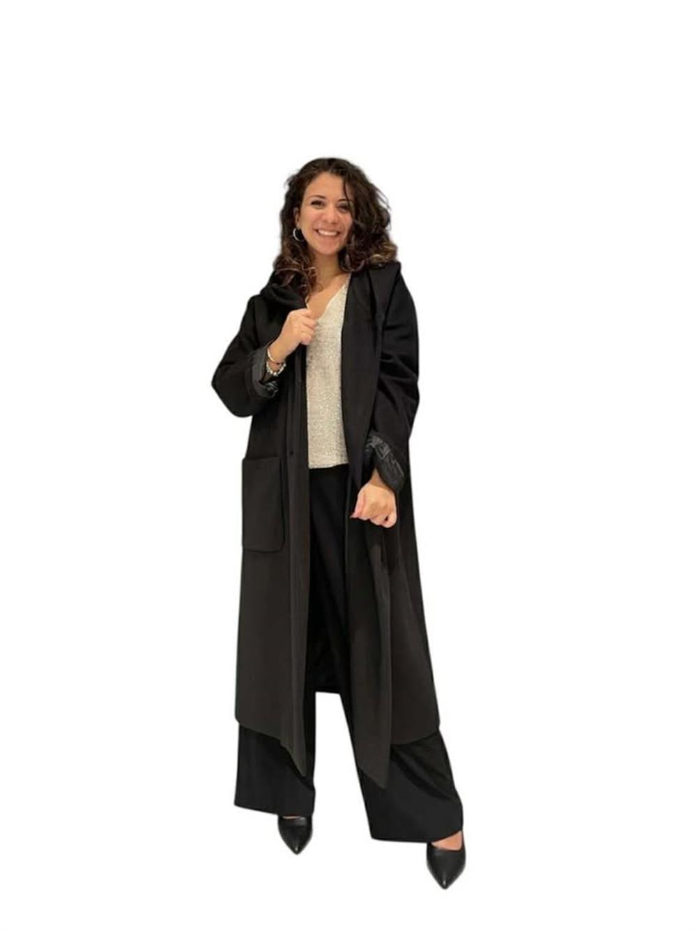 Cappotto lungo doppiopetto con cappuccio
