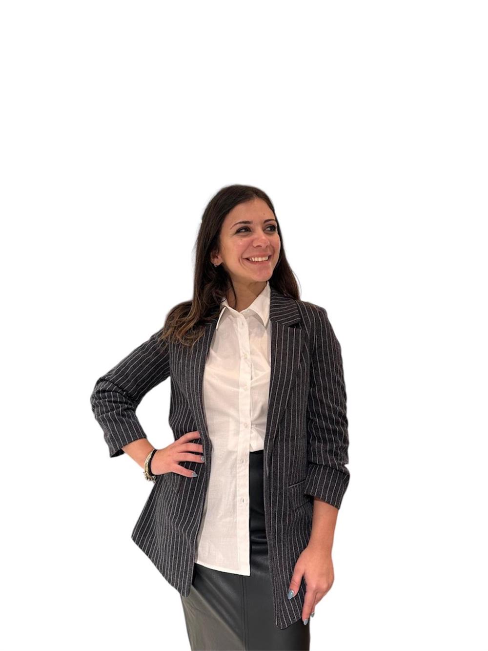 Blazer Gessato Polsino Arricciato