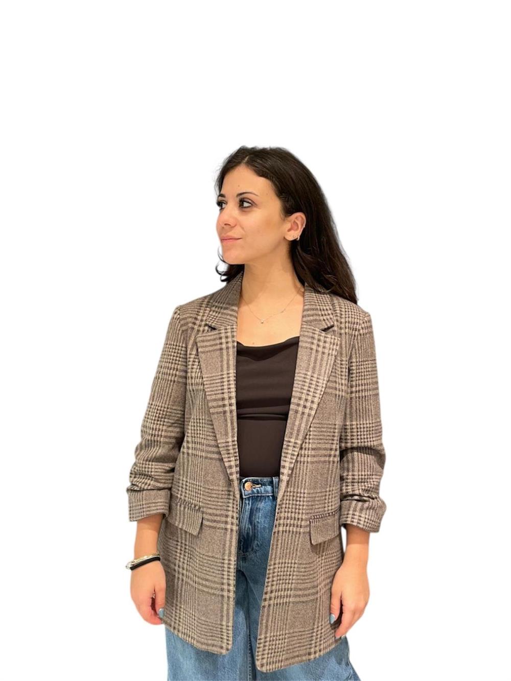 Blazer gessato polsino arricciato