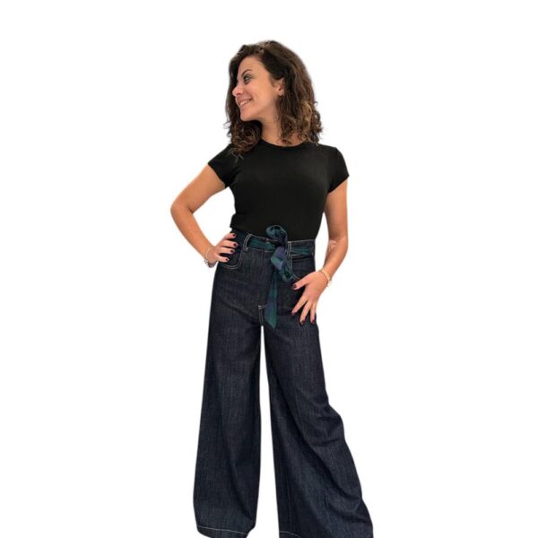 Jeans Palazzo Denim Scuro Nastro Vita