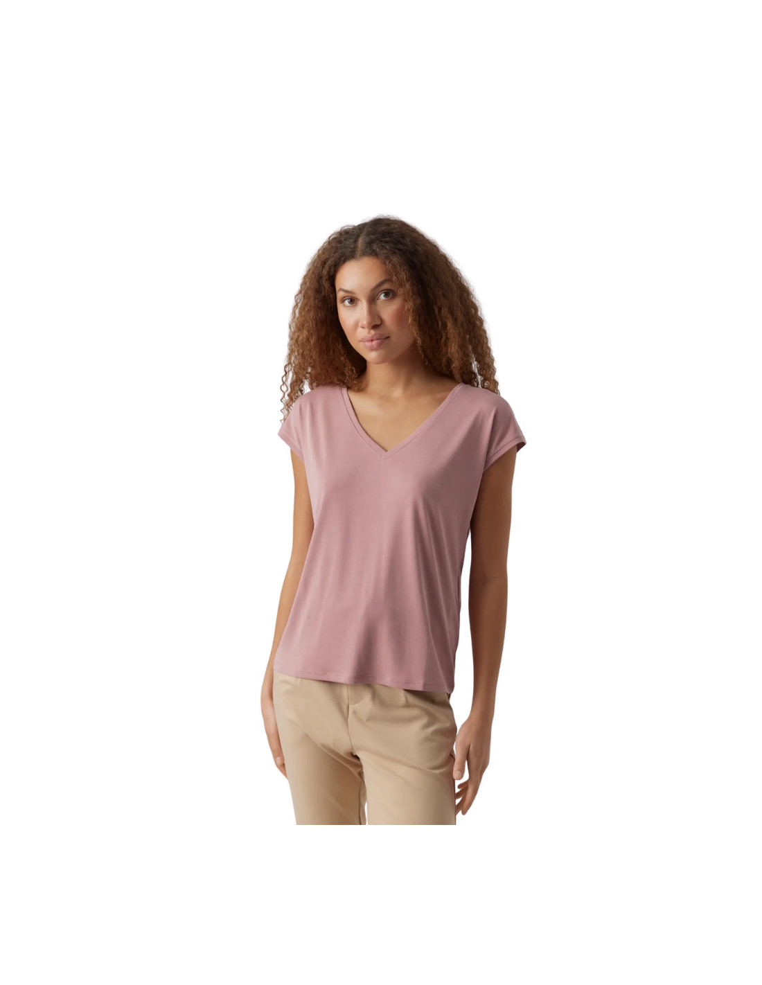 T shirt scollo v modal rosa antico